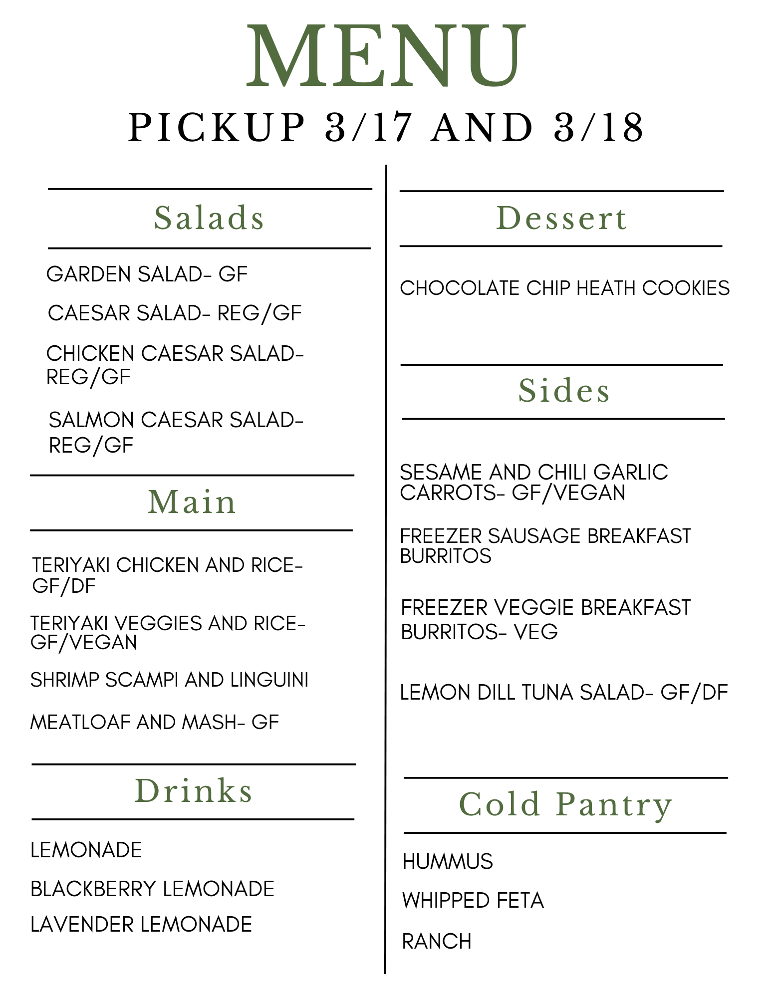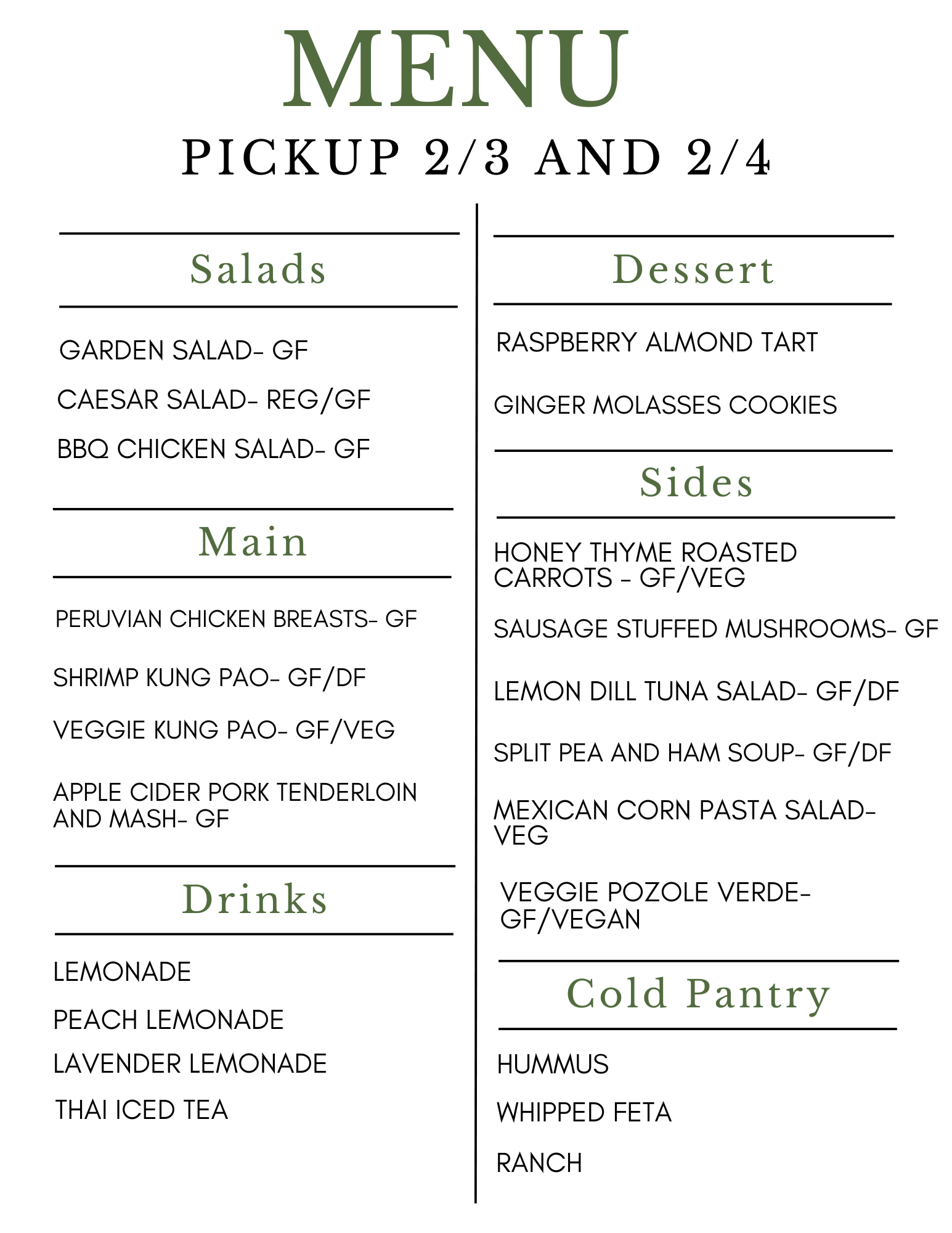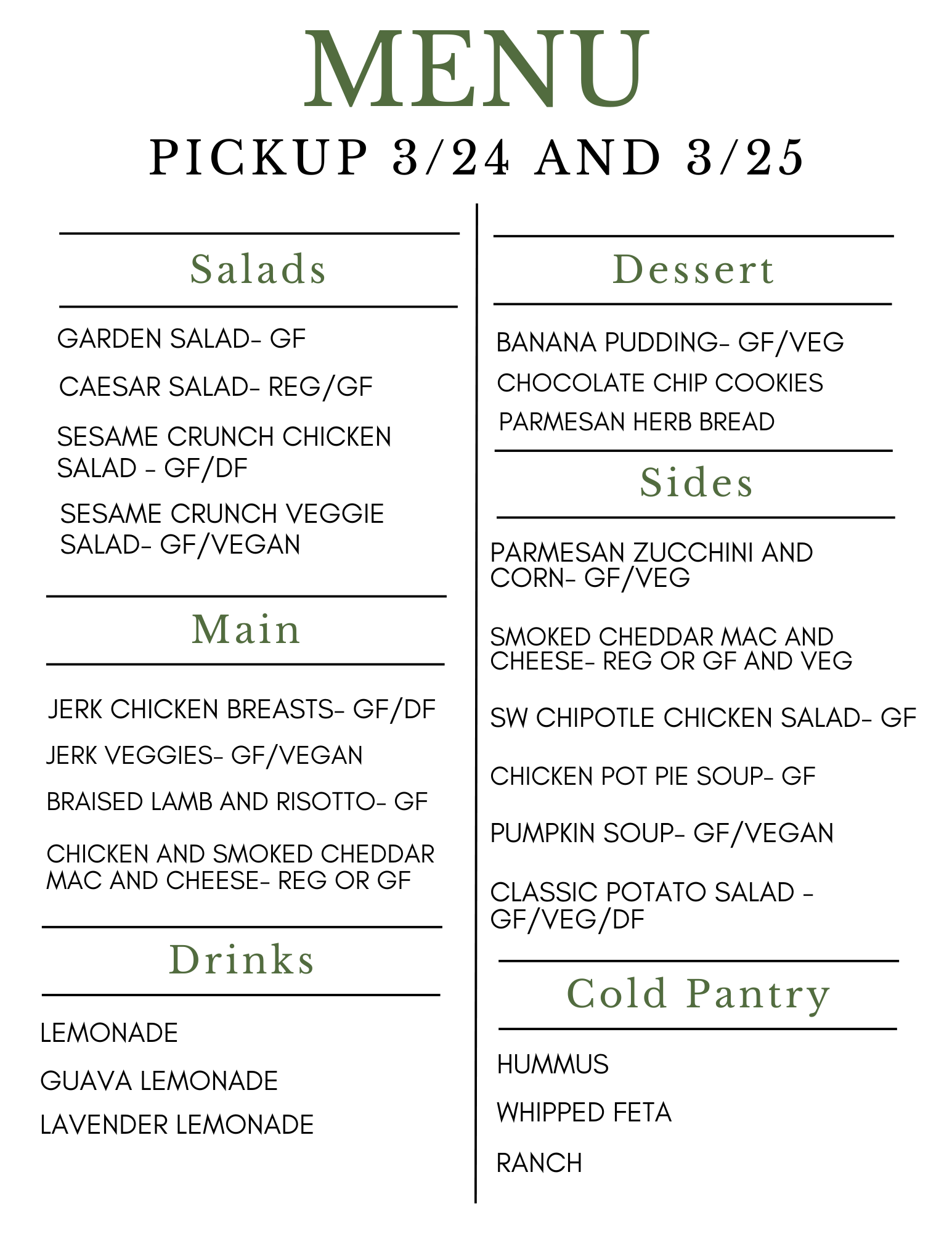 Orders must be placed no later than the Friday before pickup and paid no later than the Saturday before.